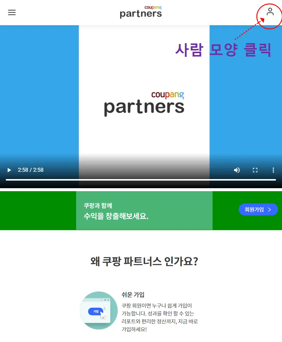 블로그를 다시 시작하면서 쿠팡 파트너스에 가입해봤네요.가입하는 방법을 공유하려고 합니다.먼저 쿠팡 파트너스 로그인 후 회원가입 버튼을 누릅니다.